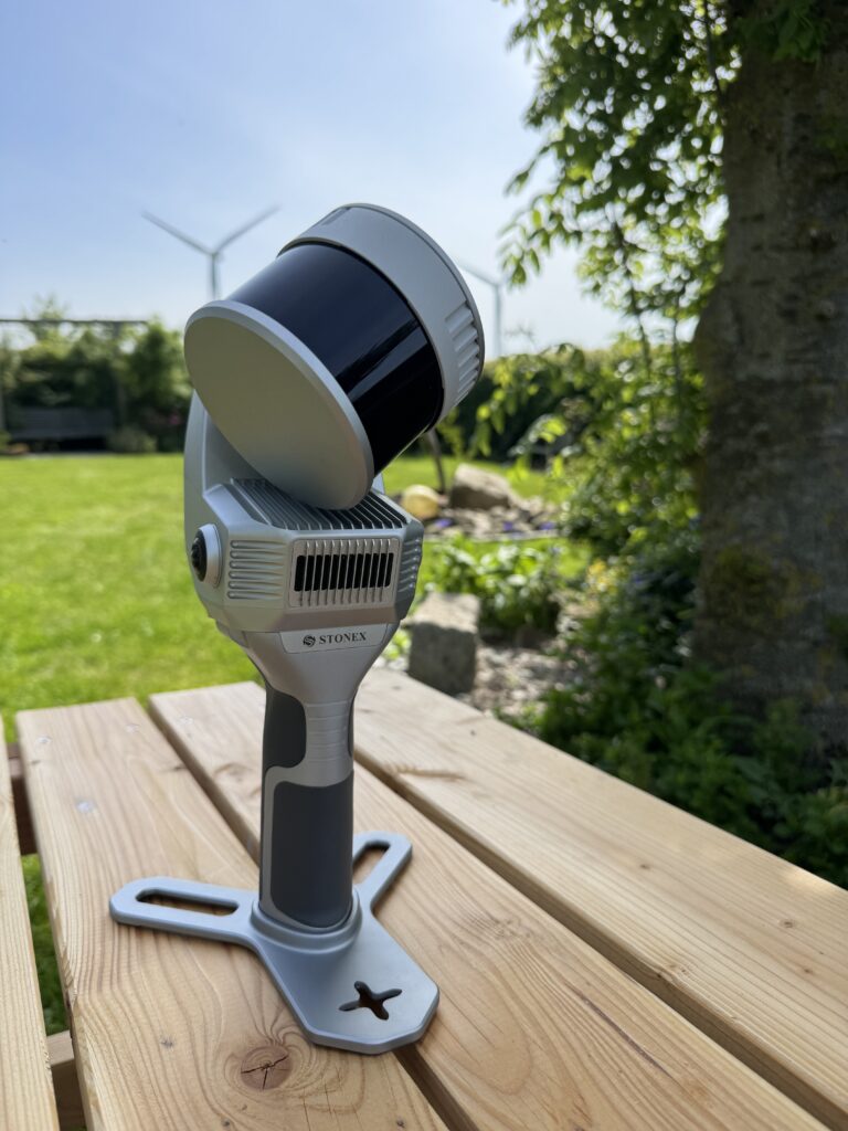 Im Außenbereich: Das System ist mit einem RTK-Empfänger ausgestattet, sodass Sie in aller Regel auf zusätzliche Bodenkontrollpunkte verzichten können. Mit einer Reichweite von bis zu 300 m sowie 3 Echos erhalten Sie auch auf größeren Grundstücken sowie auf bewachsenen Oberflächen sehr genaue Ergebnisse.
